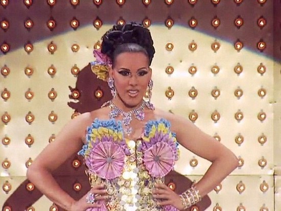 On the other hand, she is a queen with some practical issues, as far as this competition is concerned. She is extremely polished; as polished as Raja and Manila, in fact. But she rarely ever looks pretty. The hair is usually too tight and unflattering and the makeup is harsh and doesn’t play up her features well. Her eyes disappear and her mouth becomes center stage, which is the exact opposite of what most drag queens do. She needs to explore wigs more and she needs to have a makeup artist give her a makeover. She clearly knows how to apply makeup, but she needs someone to show her the best face for her. And she doesn’t dress her body very well. The issue isn’t the padding; it’s the style of outfit she tends to favor.