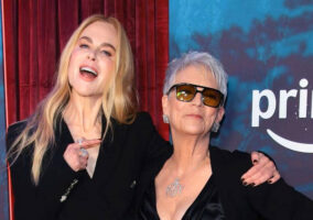 We don’t know… you put the jacket on and it’s just a shapeless mass of black. Especially when she insists on wearing it draped on her shoulders, which: no. Take the jacket off and it’s pretty cute, but we find ourselves wishing mighty hard she’d sported some jewelry. No need to go overboard; a fat cocktail ring would have sufficed. And her makeup looks pretty harsh – and DIY. Come on, honey. It’s the season premiere of your TV show. Pay someone to do you up right. She’s exactly the kind of gal who rocks the ladytux best, but this looks mostly like a series of missed opportunities to us. Couldabin a knockout.
