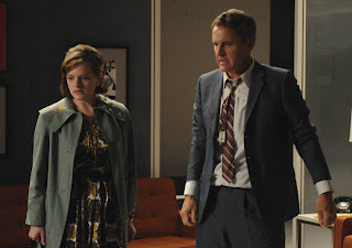 Similarly, when Don put his hand over hers in the last scene, squeezed it, held it, and looked into her eyes, we are deliberately reminded of their first day together, in the pilot, where a young and inexperienced Peggy, mistakenly taking Joan’s advice a bit too literally, made a play for Don that he gently rebuffed. And because we are reminded of those earlier scenes, these later scenes demonstrate how far these two characters have come and how much they have each other to thank for their journeys.
