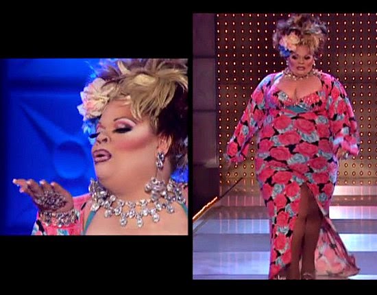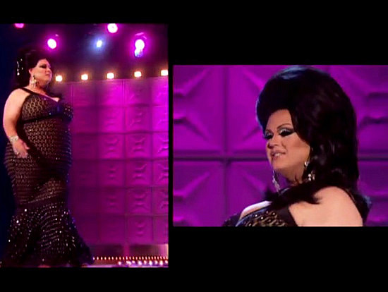 PinDelta’s interesting. In costume, she’s incredibly glamorous and shows a wit and personality. Take away all the accoutrement and she becomes a shy, kind of sour man who could work in a bank for all we know. We realize how tough it is to be a big girl in a competition like this, but she knew it going into it and besides, as far as we can tell she’s doing fine. She needs to cheer the fuck up and hit the ground running on each challenge because the judges like her and she’s got a shot to be the first big girl to make it to the finals.
