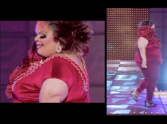 We didn’t mind the top of this look. It was at least paying lip service to the idea of a couture look. But making stretch pants for the bottom is what ultimately killed it for her. We have no idea what kind of career she has in North Carolina, but Ru expects her queens to have some reference points for fashion, performing, and pop culture. Stacy couldn’t mimic a couture look because she had no idea what Ru was asking of her.