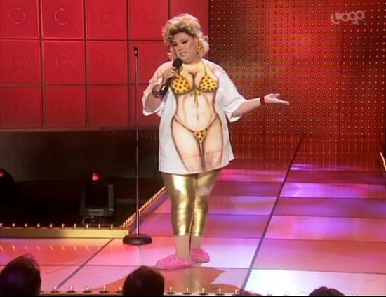 We know how cruel that gay social scene can be, especially to men of size, so we don’t judge her for her sourness. But the thing is, she’s a performer. If she can’t keep that shit off the stage, then who wants to see her? No one likes a sad drag queen.