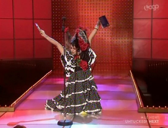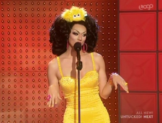 It’s a 3-way tie between Raja, Shangela, and Manila if we’re grading on looks alone. They each brought fully realized and instantly grasped looks to their routines. Unfortunately, it was Manila who gave the worst performance of the three and the second-worst of the night. We know she had to lip synch to secure her place (and she did one hell of a job), but we think she had a slight advantage because Delta’s dark pity party of a routine was worse than Manila’s bumbling attempt. She’s a naturally funny queen in a bantering kind of way (like a lot of drag queens), but the pressure of writing a structured routine really fucked with her head. And while the getup screamed for Sesame Street humor, the whole “gay PBS” thing was dead on arrival.