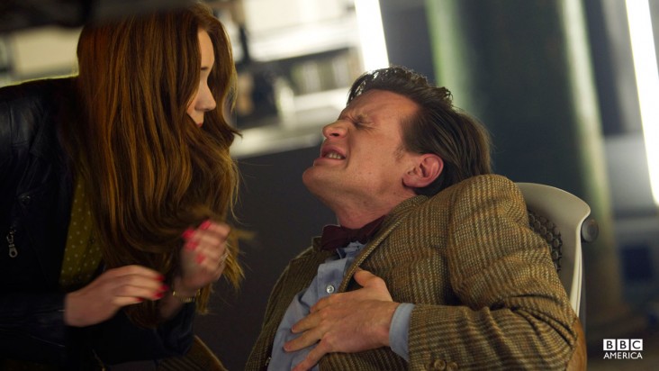 In fact, we’re going to take that thought one step further: The rather emotionally open version of the Doctor; the one who sits down with Amy and explains exactly why he can’t let go of her and exactly why he does what he does, wasn’t quite recognizable as the 11th Doctor. The words he was saying – the very action of professing his love for his companions to his companions – is something we really haven’t seen since David Tennant occupied the role. Not that 11 has been emotionally cold; just that he was never as open or poetic about his feelings as the (at times too open) 10th Doctor. Let’s also not forget the obvious symbolism of The Doctor’s heart giving out on