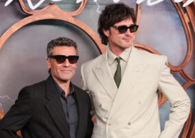 It looks fantastic on him, but we’re afraid we can’t fully appreciate it. We have to cover his face with our thumbs in every picture because that expression is slappable. That is one contemptuous look, Cap. We realize red carpet photographers aren’t the most, shall we say … genteel people in the world, but you can’t serve up an “I’m so much better than all of you” bitchface in response when you’re at your big-budget movie premiere. Good job on the suit and grooming, though. Always welcome.