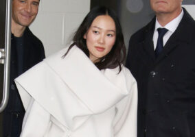 But she’s a country gal with a sickly sweet public image (and she’s baking a baby at the mo, to boot) and we honestly can’t think of a style of dress that would suit that persona better. This looks like a couture version of a square-dancing costume. There’s something about the basic shape and style that could really work well for her. But this dress needs both the shiny levels and the number of textiles comprising it to be reduced by half. And she needs to switch those bridesmaid shoes out for a pair of matte oxblood pumps. Then she’d be both county fair and TV show-ready at the same time.