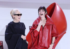 This is a cute-smart look with a ’90s throwback sort of feel to it. While we think the outfit works great for real life, we’d have rather seen either the coat or the dress on the red carpet. It’s a bit busy and distracting for picture-taking. Love the hair and jewelry here. If the outfit wasn’t so visually distracting, we think they’d shine a little more. We say a black dress under that coat, but we can be talked into a black coat over that dress. You make the call.