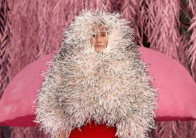Lo’s Defense: I kept coming back to this look all week. I literally couldn’t stop thinking about it. And every time I came back, I fell in love with it a little more. It’s got some wild proportions and it all looks a little itchy, but it’s so chic, so unusual, and so absolutely HER. This look really requires a second or third look. It works its way into your heart.