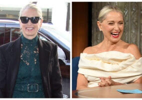 With the exception of the extremely trendy dragging hem, this is all rather perfect for her. We’d have thought the cold shoulder look would come off a little dated, but the combination of the color and her gorgeous hair is doing something magical for this look. This time, the yellow mani is the perfect accompaniment.