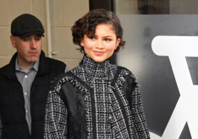 It’s pretty much generic as suits go, but she actually looks pretty great on it. Obviously the shoes (which we didn’t like when she wore them the other night) do a lot to give it some dazzle, but she looks stylish and comfortable, which does a lot to sell a look. It’s nothing new or revolutionary but it is a little off her usual style path, which is nice to see. We wonder if she’s not setting herself up for more of a Prestige Actress style going forward.