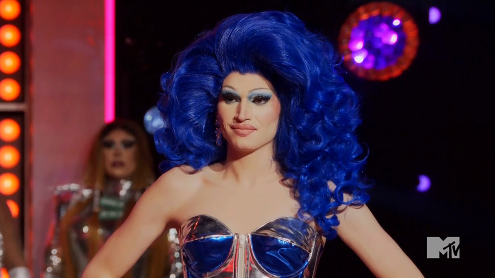 Amethyst’s look is fun, but we don’t love her preference for these bad-perm wigs and we agreed with the judges that her makeup needs some adjusting. As for Princess Poppy, on the one hand, we were happy to see her get away from the blonde wigs. On the other hand, this is generic drag bunch hostess drag. Spice’s look is flawless, which is in line with everything else about the twins: unsurprising. Aura broke away from the samey-same drag she was sporting last week and she came out looking great, although we question those tights. Loosey’s look, like so much of her drag, has an ’80s feel to it. We love the costume but we kept waiting for Michelle to tell her that her wig is matronly. Then again, it feels like the show barely lingers on critiques anymore.