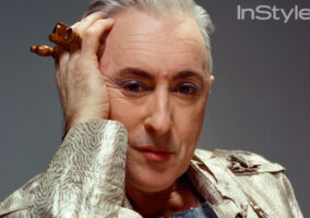 We hate fabric flowers and that hatred tends to increase in tandem with the size of them, but this looks stunning on her. LOVE a pewter on the red carpet. So much more interesting than silver.