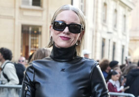 Hold on to your wig, girl. It’s windy out there today. Anyway, she’s a fashion savant who can make nearly anything look good, which is what we should all keep in mind as we take in this latest development. She cuts quite a figure and the Paris shows are where we expect to see stars sporting more challenging looks than the average red carpet ensemble. Even so, that “equestrian train,” as the house refers to it, is simply not a workable or viable element with that huge spike of fabric jutting out of her ass. We don’t care about how she sits in it. You’re not supposed to even think of such things when you’re a guest of a house at the Paris shows. Impracticality is fine in high fashion pieces worn to very specific events. Even so, this just looks awful to us. The sleeve knots we don’t mind so much.