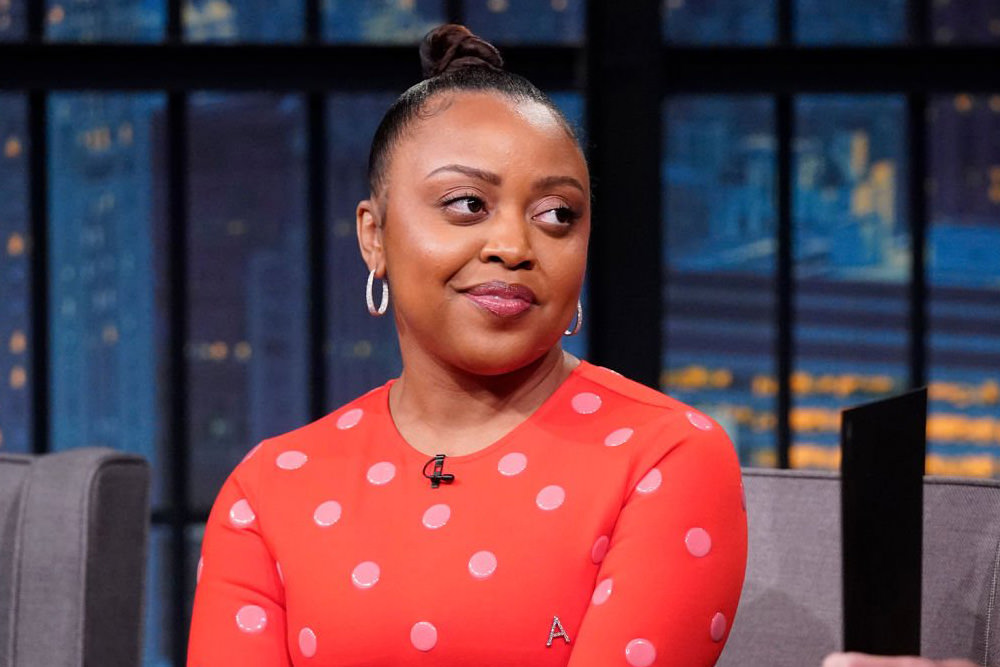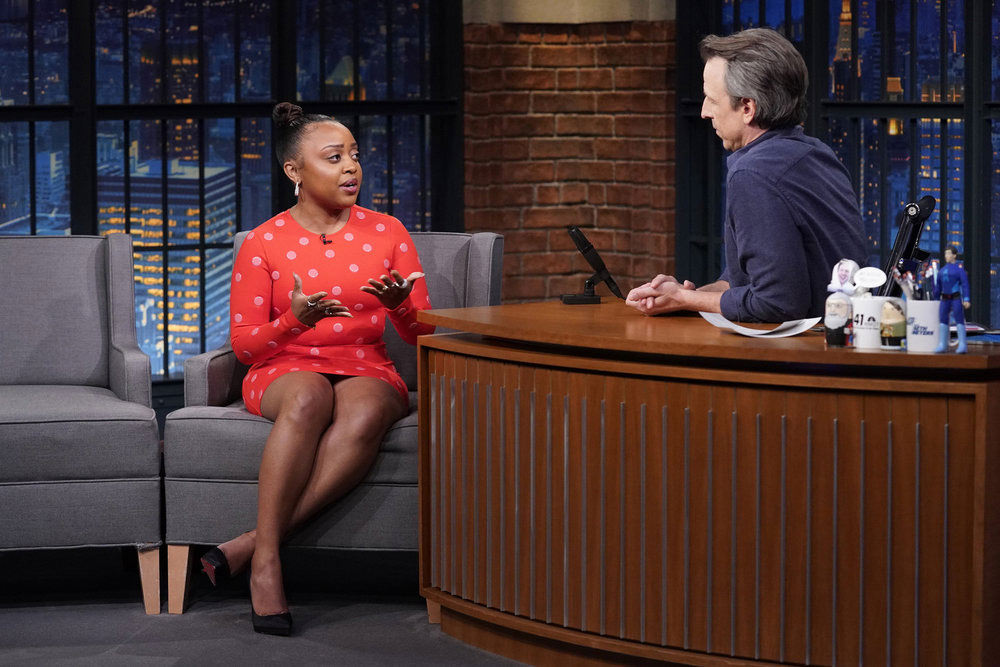 Let’s take another break from looking at insane Cannes Film Festival gowns and look at a cute little frock instead. Abbott Elementary star Quinta Brunson was in a polka dot sort of mood when she stopped by Late Night with Seth Meyers.