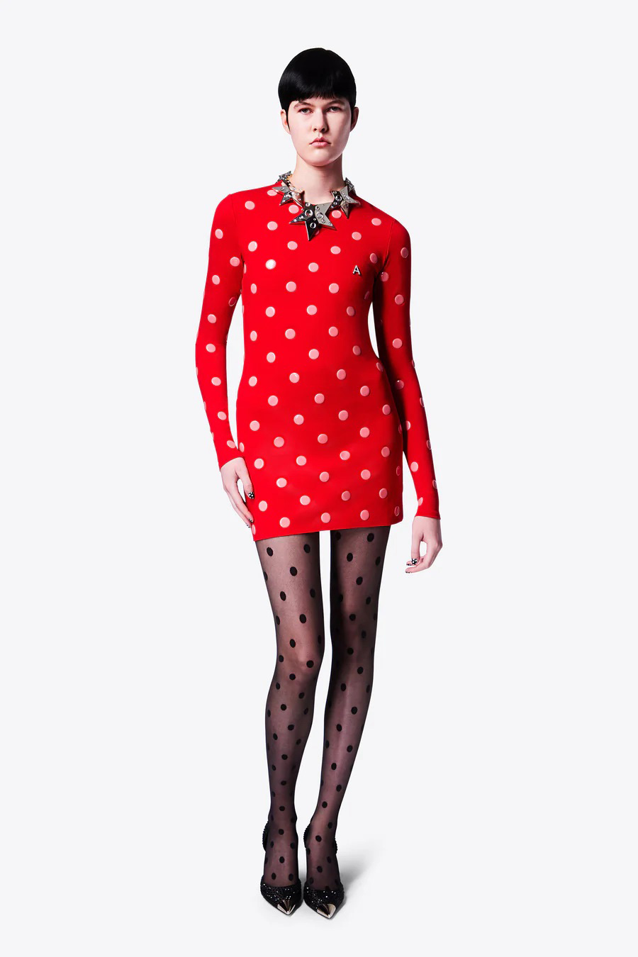– Area Polka Dot Long Sleeve Mini Dress