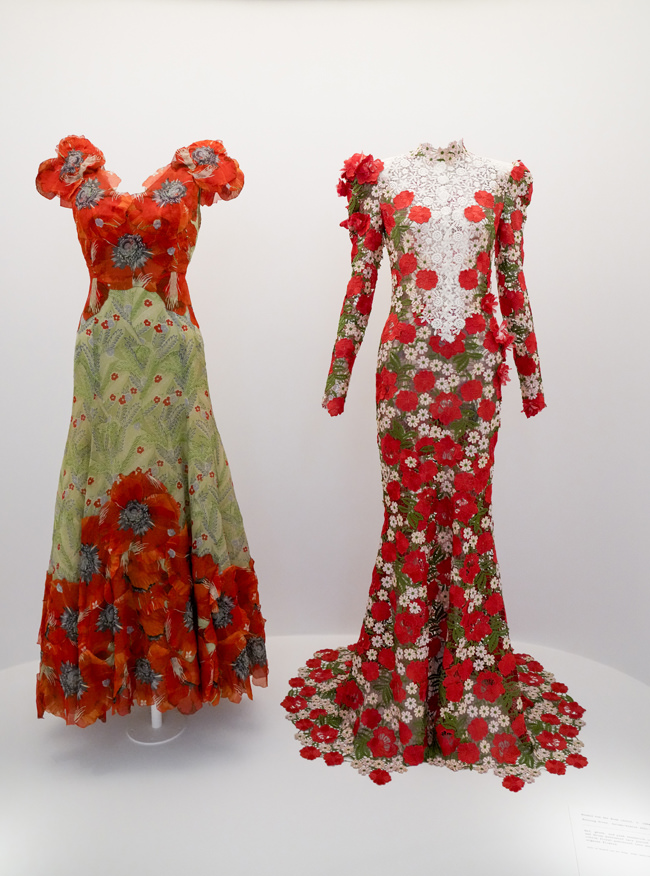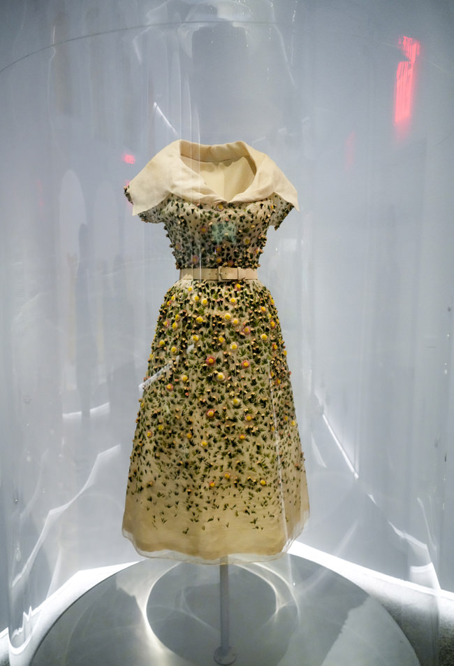 The exhibition features approximately 220 garments and accessories spanning four centuries, all visually connected through themes of nature, which also serves as a metaphor for the transience of fashion. Visitors will be invited to smell the aromatic histories of hats bearing floral motifs; to touch the walls of galleries that will be embossed with the embroidery of select garments; and to experience—via the illusion technique known as Pepper’s ghost—how the “hobble skirt” restricted women’s stride in the early 20th century. Punctuating the galleries will be a series of “sleeping beauties”—garments that can no longer be dressed on mannequins due to their extreme fragility.