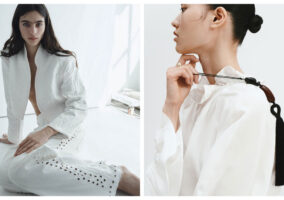 These references thread throughout the collection, recalling a New York City alive with arts and culture, show business and Modernist painting, Birdland and the Algonquin. The collection reflects the electricity of midcentury Manhattan and the legendary talents who populated it—the vibrant world of Moose Charlap.
