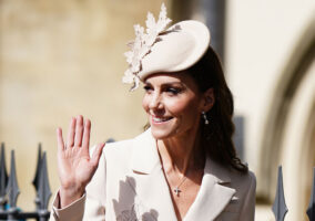 Oof. That’s not great. There’s not a lot you can do to make us love a vivid green lace dress, but all of the styling choices tend to make it worse. That hat is terrible. The cardigan only adds to the mumsiness. The neutral shoes are fine, although we think a more tone-on-tone approach for the whole look would serve it better. Line the dress in green, sport a darker green pair of pumps, Princess Cathy-style. Rip all the leaves off the hat and leave the cardigan in the limo. We still wouldn’t like the dress, but it would be improved significantly.