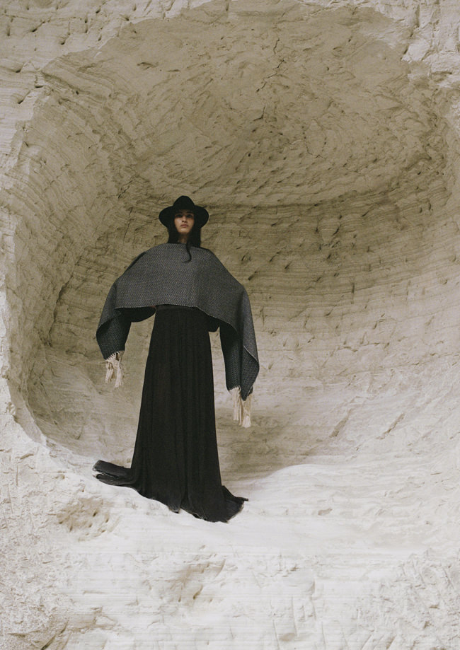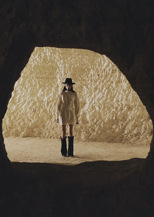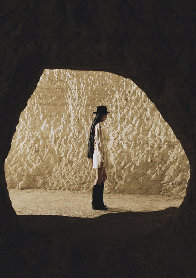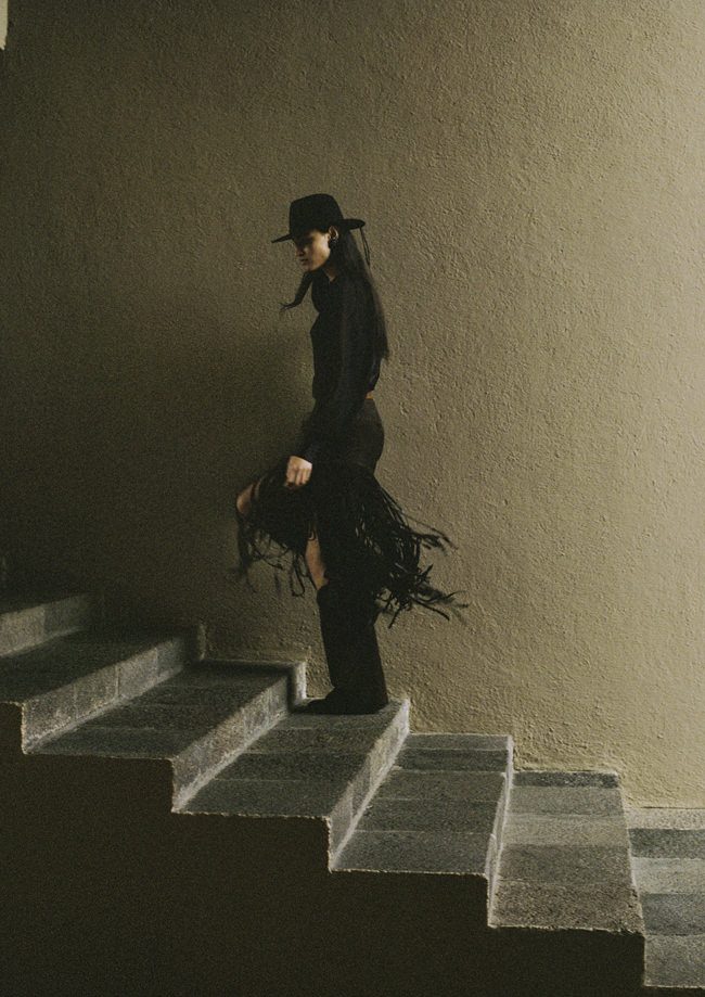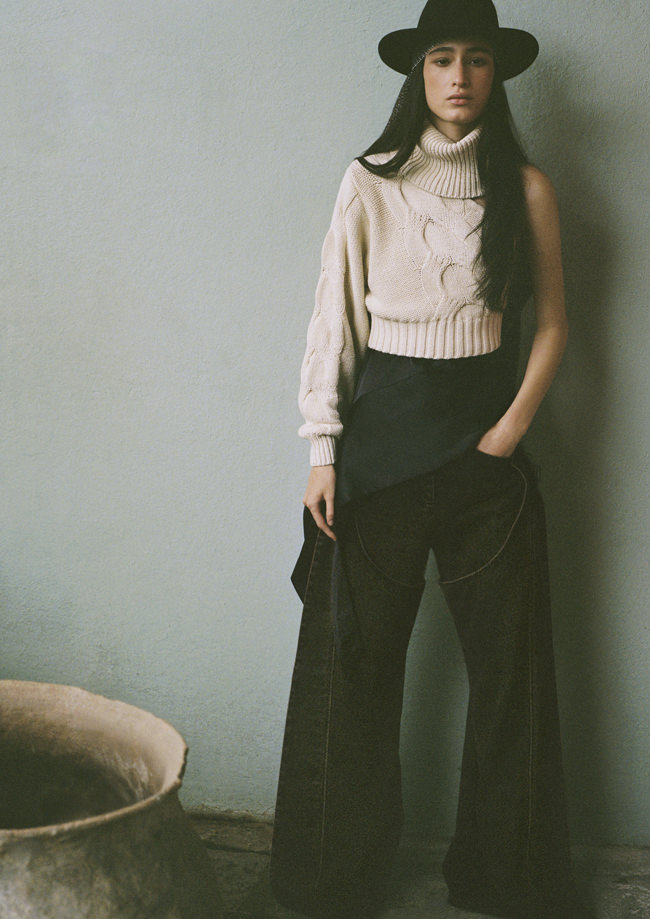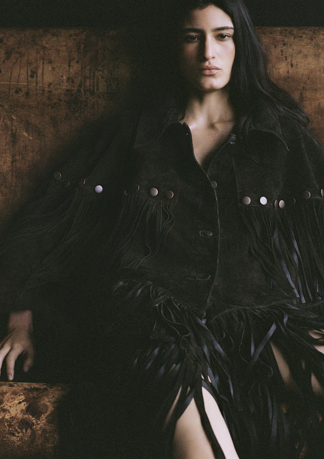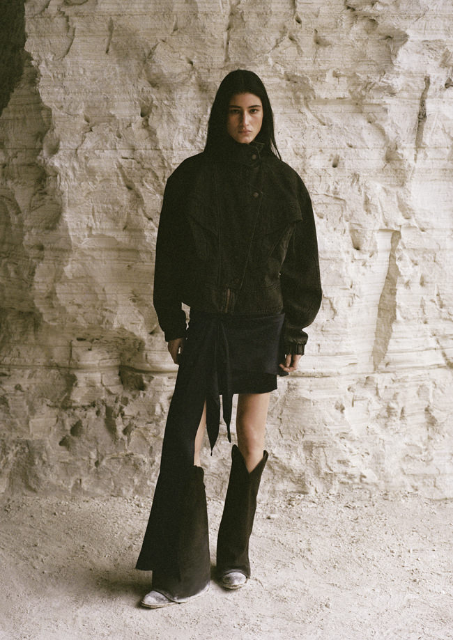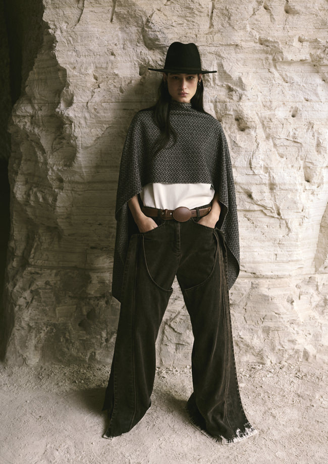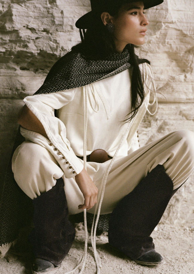 Explored through the lens of her personal and cultural heritage, Lorena Saravia crafts a highly versatile wardrobe, including some of her most covetable signature styles. The 29-piece collection balances the strength of structured silhouettes, such as Lorena’s best-selling denim jacket and denim chaps, with sensual evening styles, including draped blouses and backless gowns. Urban and versatile, an undeniable tribute to Mexico plays out in the workwear fabrics, craft-like details, and cowboy boots – not to mention a colour palette awash in poetic desert hues.