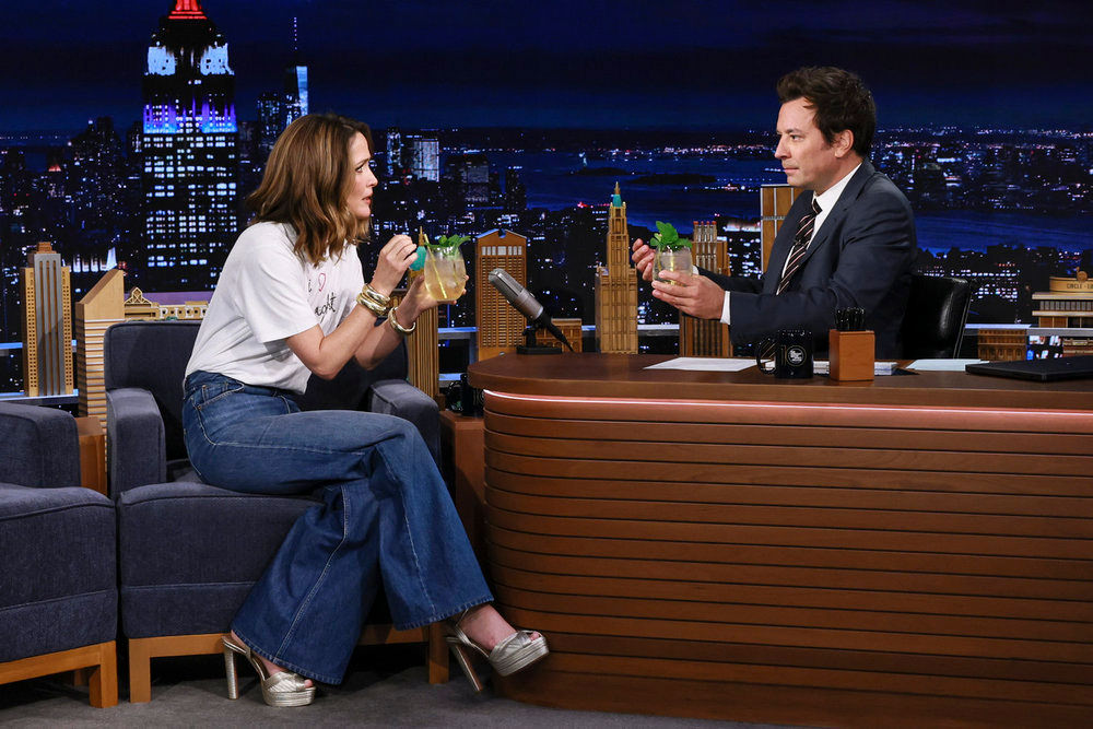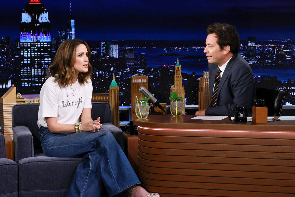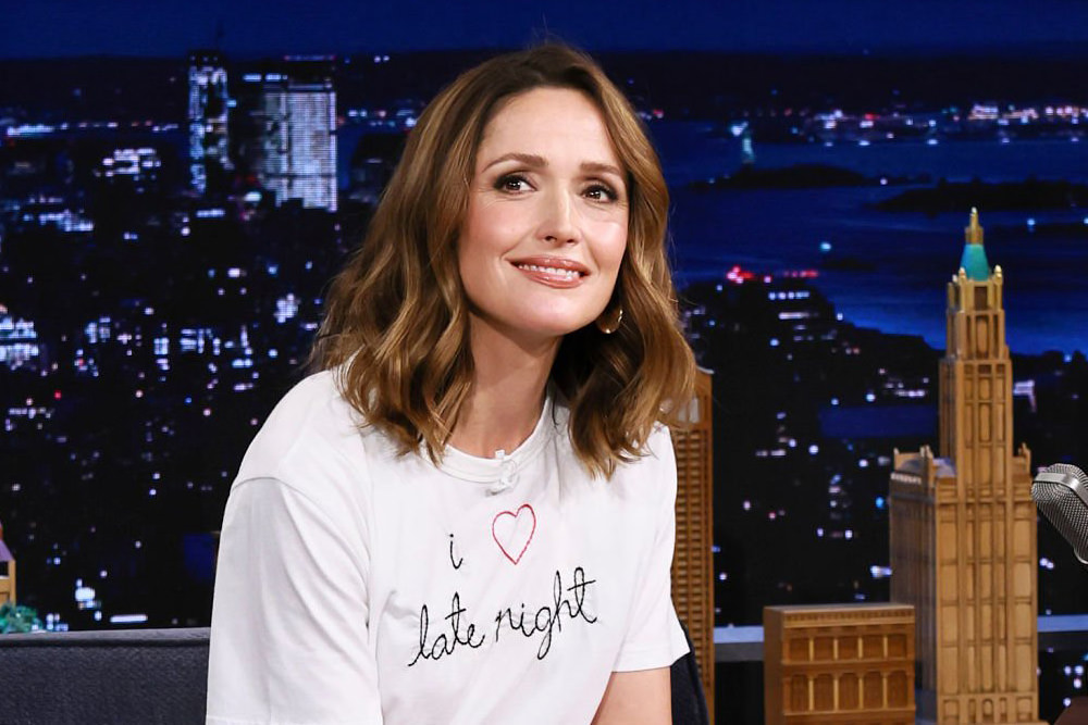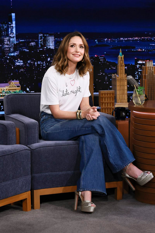 At first, we thought of featuring these shots of Platonic star Rose Byrne on The Tonight Show because we thought she was sending a cute show of support to Stephen Colbert in the wake of his firing, but “Late Night” is Seth Meyers’ show, so we guess she was just doing a… somewhat broader, more generic show of support for the entire concept of late night? Either way, the look is surprisingly cute:
