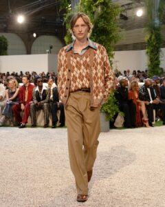 That’s a lot of argyle, mister. We don’t think there’s any version that would have us supporting wearing a matching cardigan over a pullover sweater, but we do kind of wonder if we’d like this more in a color that wasn’t so dreary. Imagine this whole look in black and white and it becomes a lot more interesting. We’ll give him credit, though. Insofar as it’s possible to make two argyle sweaters look hot, he’s managing it. The boots should be brown.