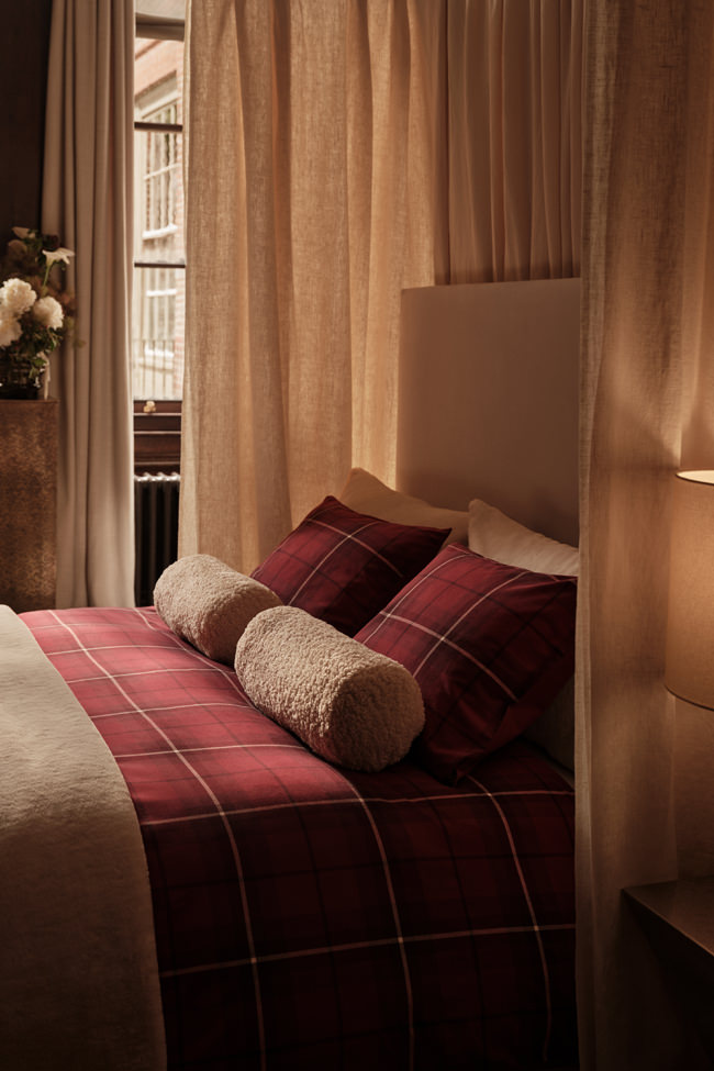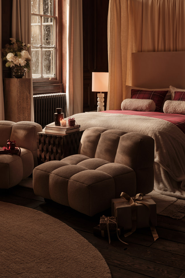 Modern elegance meets festive tradition in this year’s H&M HOME holiday collection. A neutral Christmas palette with brown and warm white, intersects with red hues and pink. From red bistro inspired cutlery and plates, flickering candle holders, glass lanterns, furry cushion covers, stockings and bolsters to paper ornaments in red, white and brown – ’tis the season’s interiors focus on layered textures and rich materials.