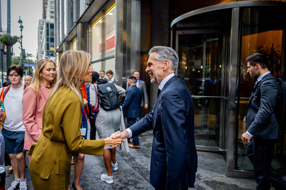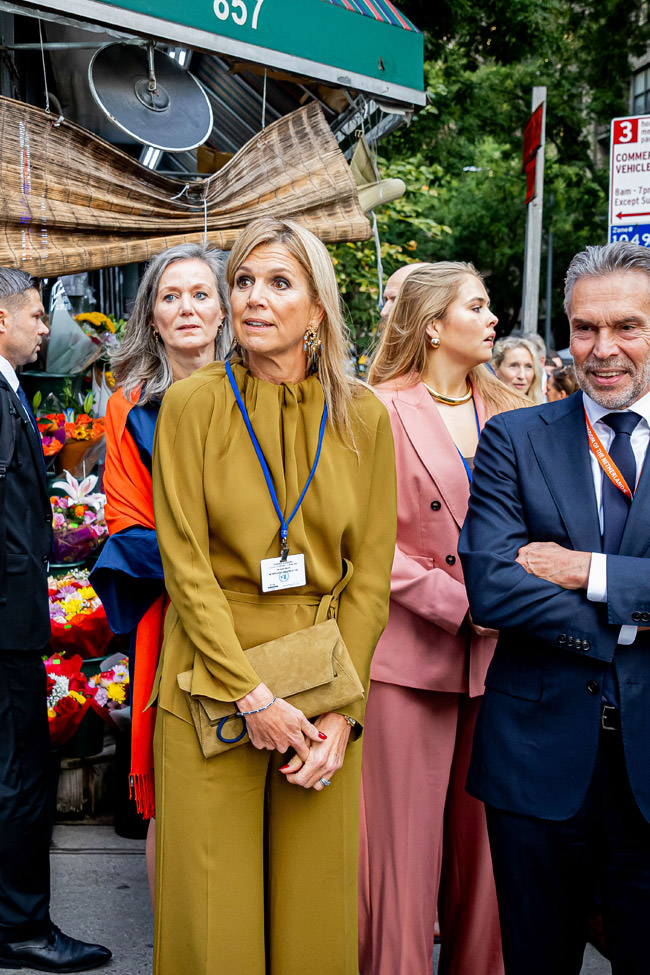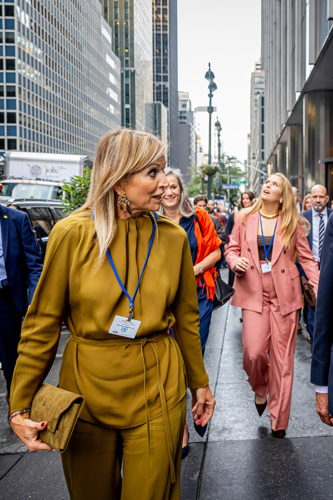 Queen Maxima continued her U.S. tour by visiting New York in her role as the United Nations Secretary-General’s Special Advocate for Financial Security (UNSGSA) along with Princess Amalia and Prime Minister Dick Schoof. She continued to give her own spin on Businessqueen style, but it’s a bit less successful than yesterday’s suit.