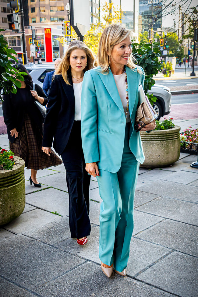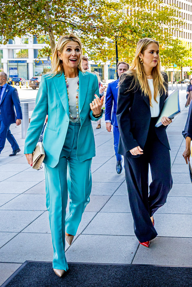 Queen Max is in Washington with Princess Amalia and she got all businesslike for the occasion (which is something of a royal theme today). The Queen is making a visit as the United Nations Secretary-General’s Special Advocate for Financial Security. She’s got books and binders, people. She’s also got a bold, bright suit that looks great on her.