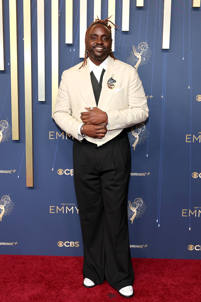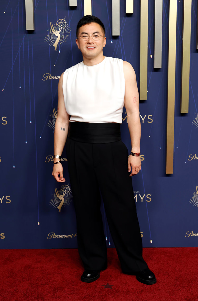 We love that he made such an unusual choice, but the pants come off like they’re too big on him and the jacket looks a bit too much like a cardigan. It’s giving grandpa in sweats.