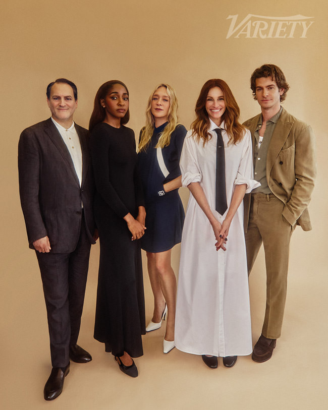 In a new cover story for VARIETY, Julia Roberts joins fellow stars of AFTER THE HUNT Andrew Garfield, Ayo Edebiri, Chloë Sevigny, Michael Stuhlbarg, and director Luca Guadagnino to sit down with Co-Editor-in-Chief Ramin Setoodeh about the film’s message and how the cast was thrilled to work with Roberts—and nervous to meet Sevigny. They also discuss a potential sequel to MY BEST FRIEND’S WEDDING, Guadagnino’s adaptation of AMERICAN PSYCHO, Roberts wearing a sweater with Guadagnino’s face on it, and more.