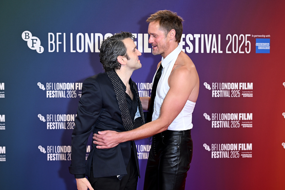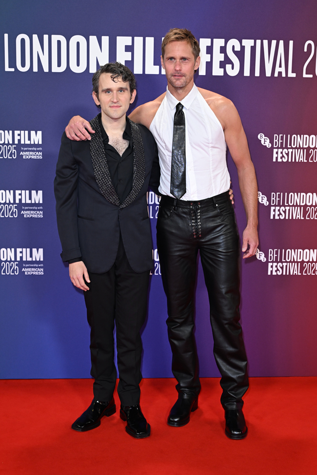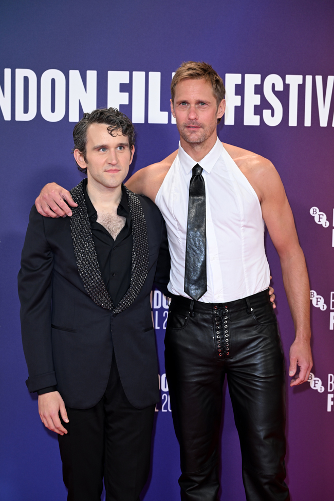 Harry Melling and Alexander Skarsgård posed at the BFI London Film Festival premiere of their queer kink romance Pillion and as you can see, the latter’s outfit made such a splash that we wondered whether it would be fair to feature his co-star at all in this post, but we think the juxtaposition of their looks is the entire point of them. Like tops and bottoms, butches and femmes, doms and subs, you need one to define the other in this case.