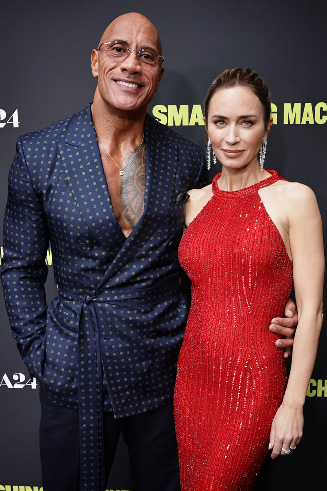 The Smashing Machine stars Dwayne Johnson and Emily Blunt finally get their act together in time for the LA premiere.