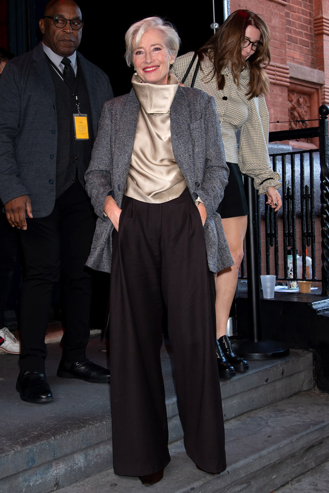 Emma Thompson came to the New Yorker Festival working a look that feels like classic autumn-in-the-city style while also feeling like the kind of quirky oddness she can’t help but be drawn to.