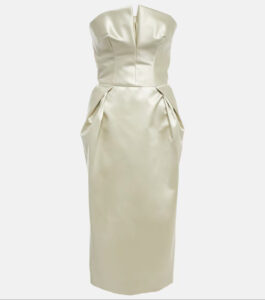 Honestly, it’s not a particularly great dress, but it’s a surprisingly terrible choice for this setting and the way she’s seated. The construction and finishing on a Margiela dress should look a hell of a lot closer to impeccable than that. It’s puckery and that hem looks like it was taped up. Also, the black pumps are a surprisingly low-key choice. The whole look feels kind of thrown together, which isn’t like her.