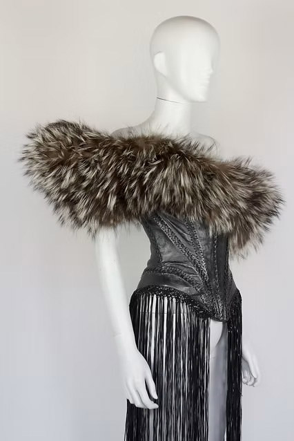 Dominique Sirop Corset with Large Fur Collar from the Fall 1999 Couture Collection
