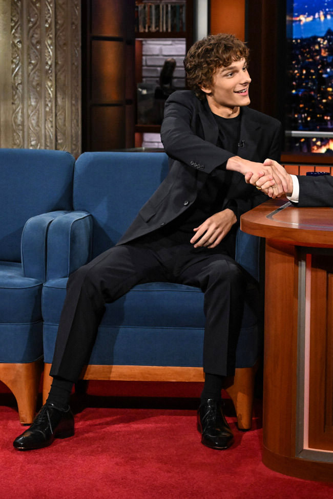 Kid, you had us on your side and then you had to go and do this. Regretting You star Mason Thames impressed us yesterday with his stylish look at the Berlin premiere, as we praised him for avoiding the dreaded all-black Void Suit which has been overtaking all celebrity menswear looks this fall, like a zombie plague. It looks like you got bit.