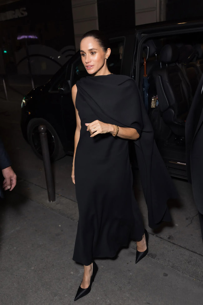 And if you’re a duchess in Paris for the runway shows, why, it’s practically required that you put on a second outfit and head out to an after-party. Again: this is very much in her mode, but with a flawlessness she doesn’t always achieve. She looks great. We’ll be nitpicky and note that the lip color and mani should be a bit more saturated. Those pale pinks don’t pop. Anyway, we like seeing her out and about, looking chic. She tries too hard to be relatable in her public image, but we tend to think she and Harry would be better off embracing a more conventional celebrity philanthropist sort of lifestyle instead of a pseudo-royal one or a lifestyle influencer one, both of which tend to attract a lot of criticism. We should see her at more museum galas and runway shows.
