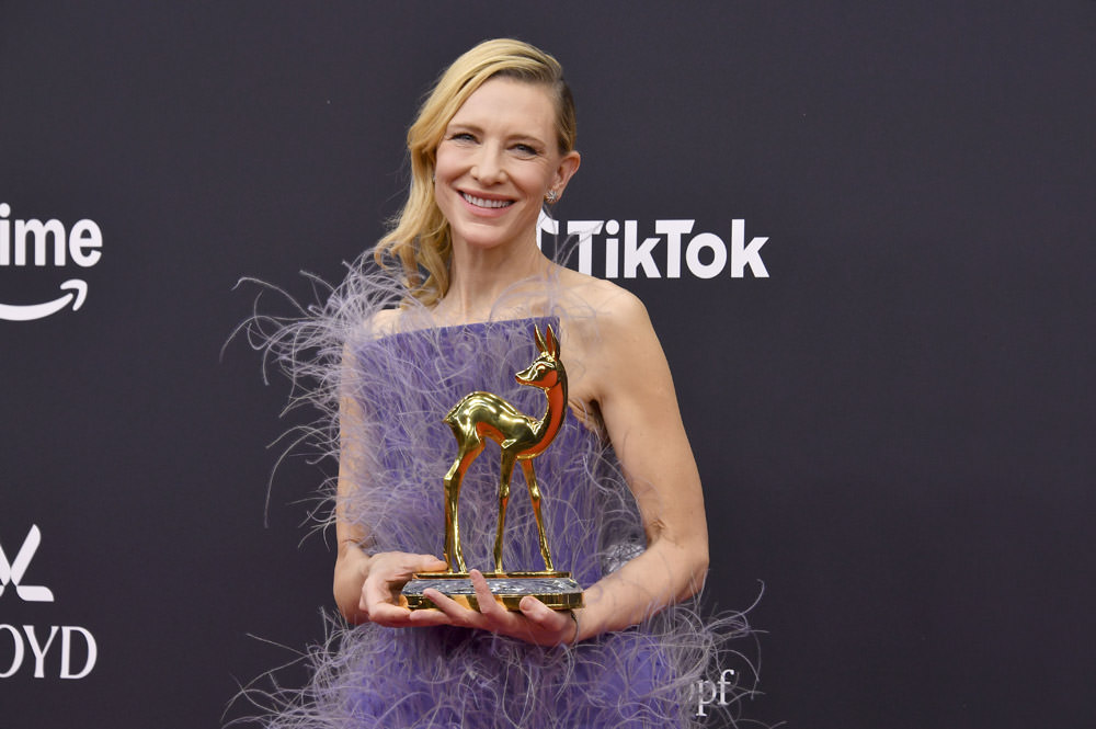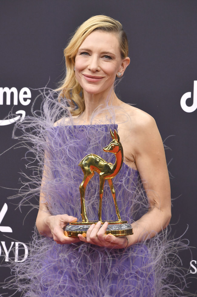 Cate Blanchett came to the Bambi Awards in Munich to pick up one of their charming “West Elm Holiday Collection” trophies for artistic excellence and humanitarian and environmental commitments. She chose to embody two of our least favorite trends of the last year: the overuse of marabou feathers and the ubiquity of lavender long after Easter. But we were all of us deceived, for another horrible trend is about to revealed.