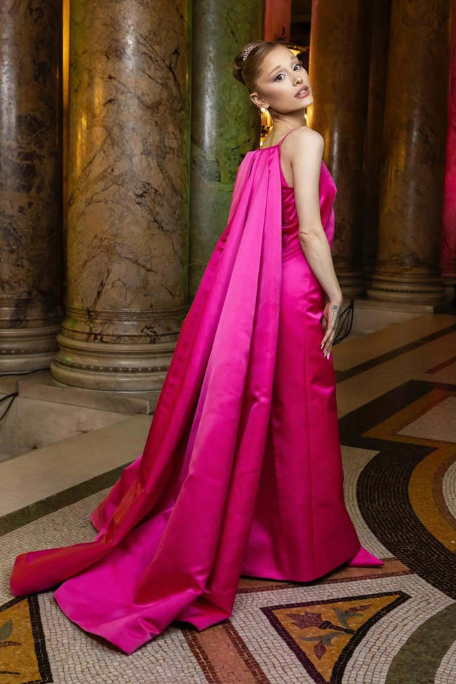 Ariana Grande: Custom Givenchy Sliced Cape-back Dress In Fuchsia Silk Duchesse Satin