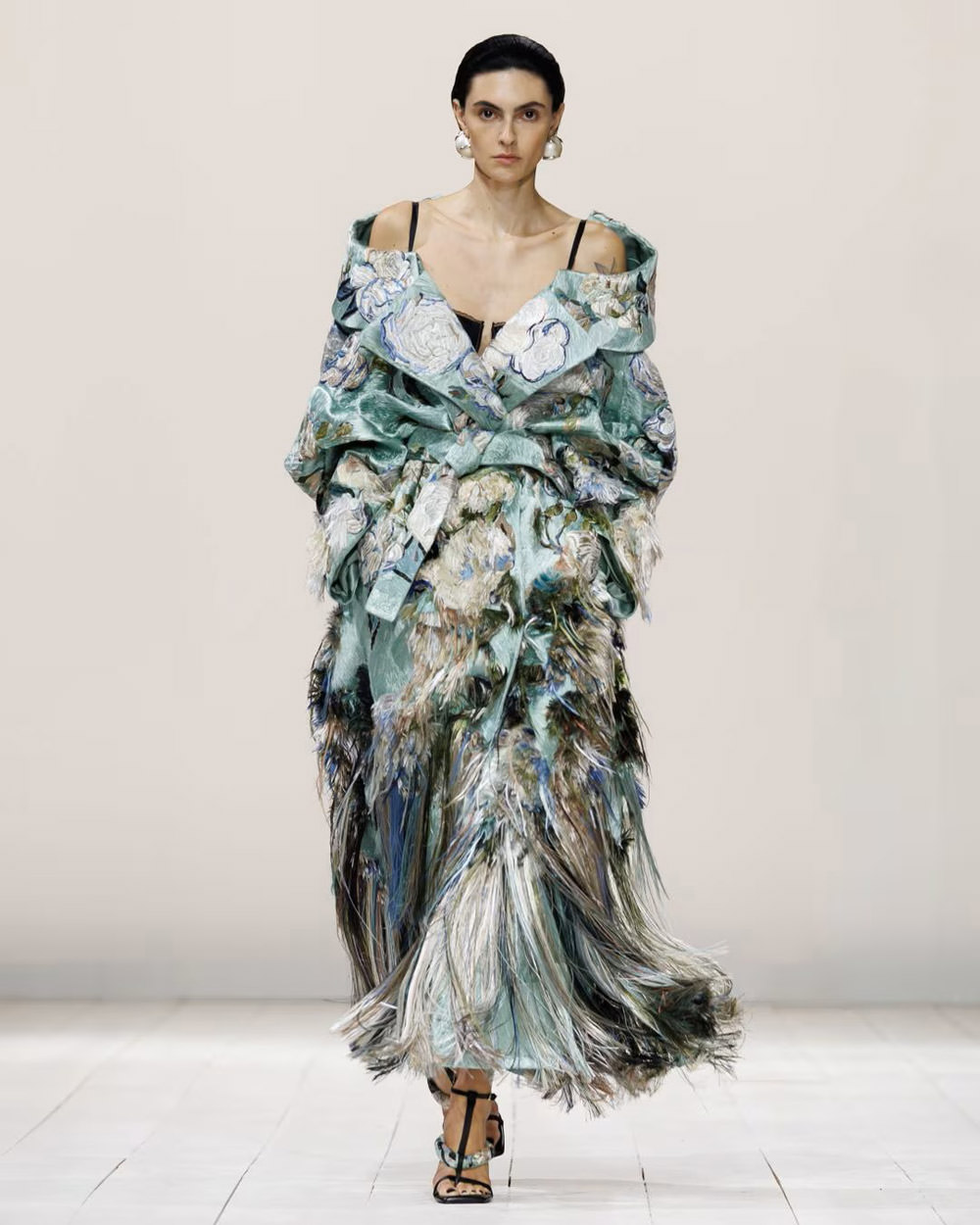 – Givenchy Sliced Coat in Mint Duchesse Satin with Shredded Rose Satin Stitch Embroidery from the Spring 2026 Collection