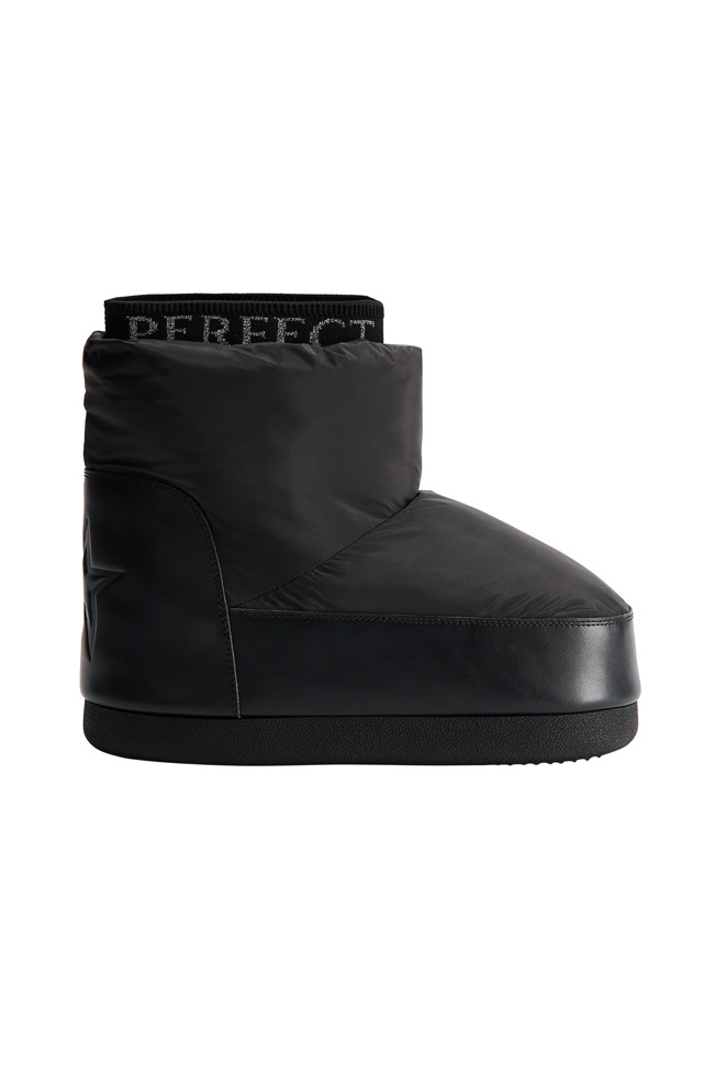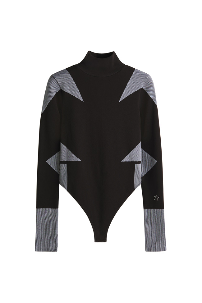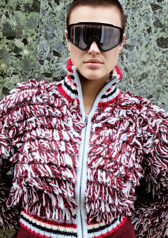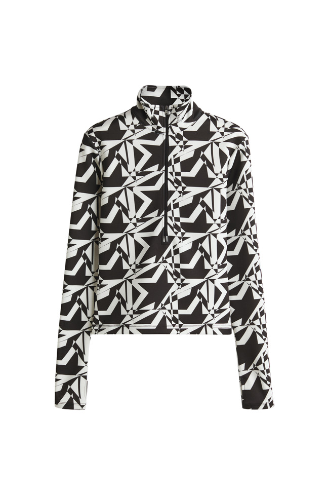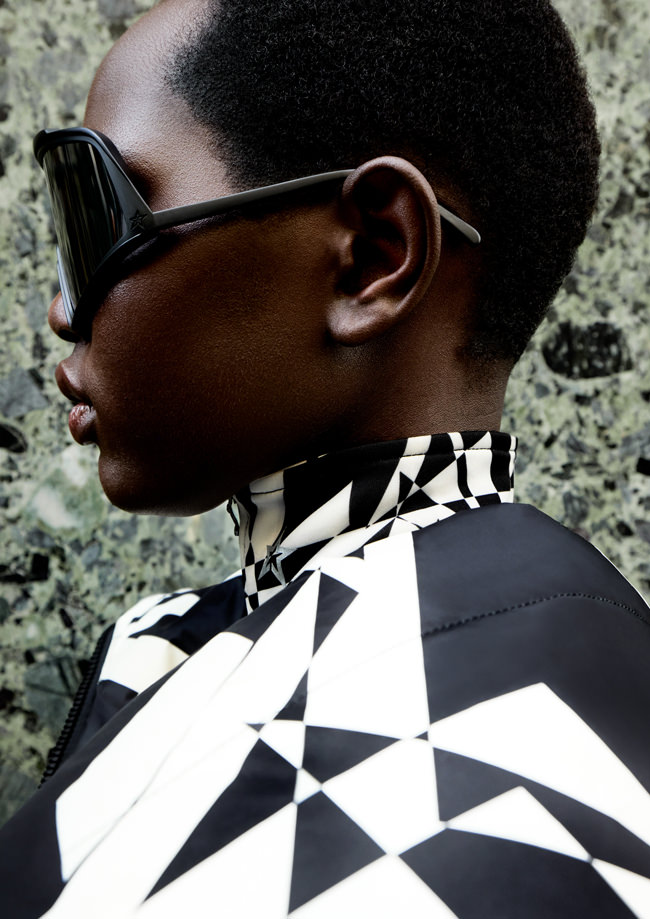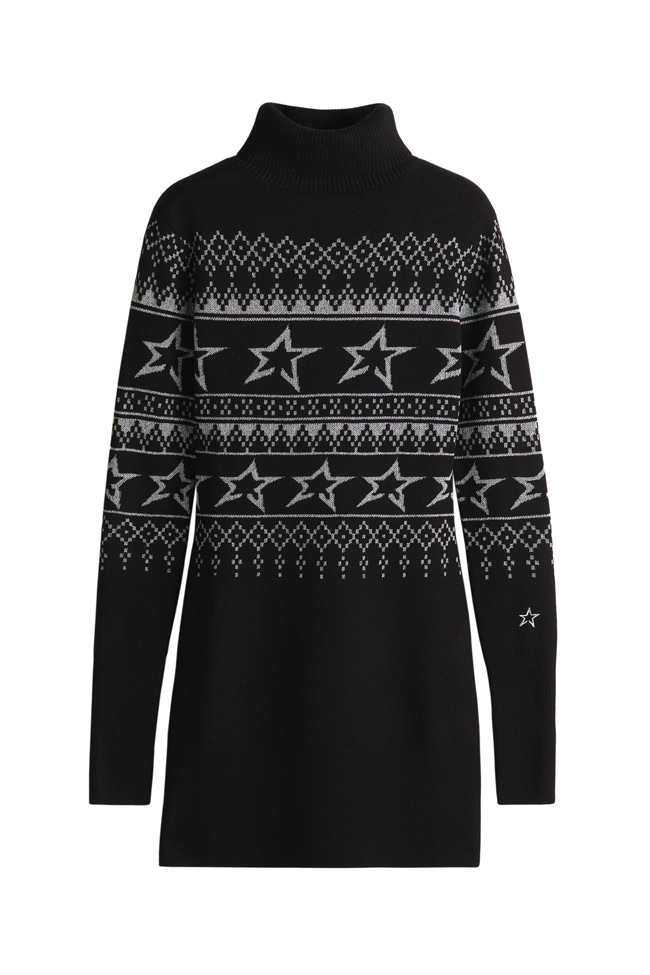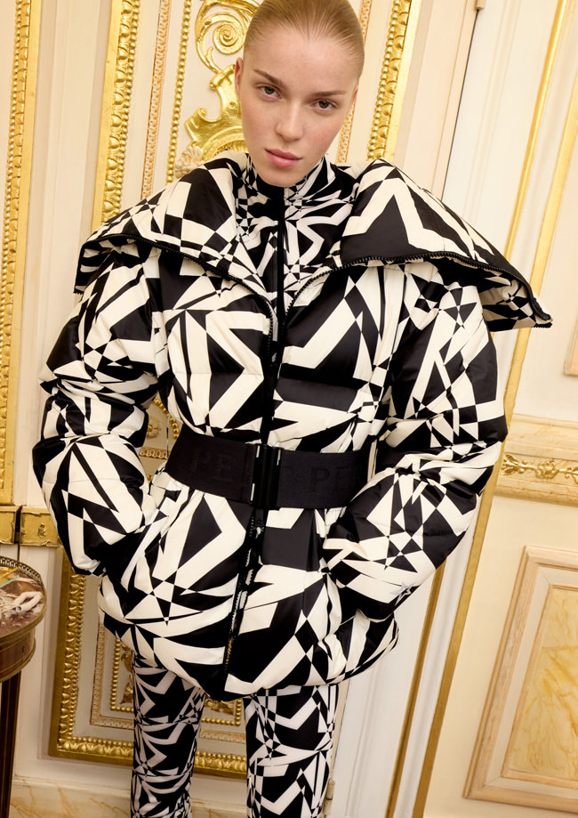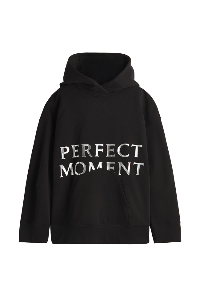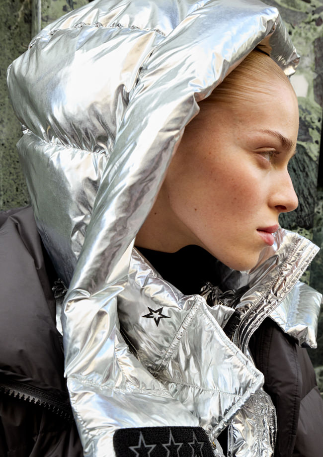The colour palette draws on Perfect Moment’s iconic use of black, white and silver, and introduces a decadent burgundy and icy blue as a contrast. Materials include faux fur, leather, lurex knit, merino wool, mohair and cashmere blends. Prints are a play on Perfect Moment’s logo – the North Star – which also feature on each piece as a mark of distinction. Details like oversized hoods, toggles at waist to cinch in if desired, jacquard trims and pom-poms balance function and style.
