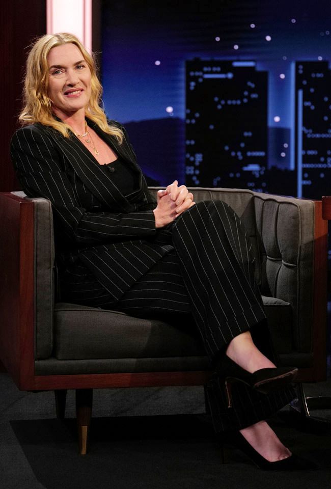 We don’t know if Kate Winslet has adopted a more directorial style to promote her debut as a director or if she finally took our advice and haranguing to heart and got out of those body con dresses she sported for well over a decade. Either way, we’re loving the outfit she wore to promote Goodbye June on Jimmy Kimmel. Live