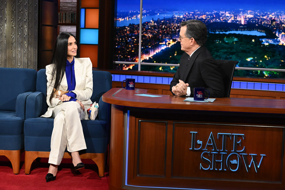 Landman star Demi Moore seems to be bouncing back and forth between good style choices and not-so-good ones lately. Her suit for her visit to The Late Show counts as a good choice.