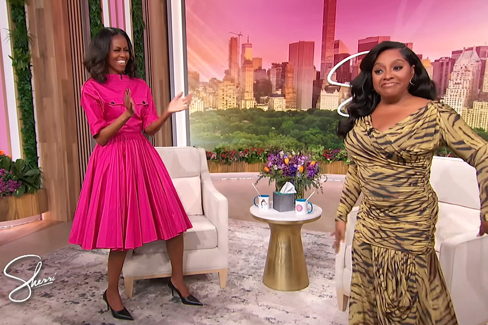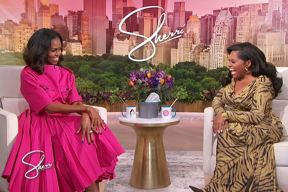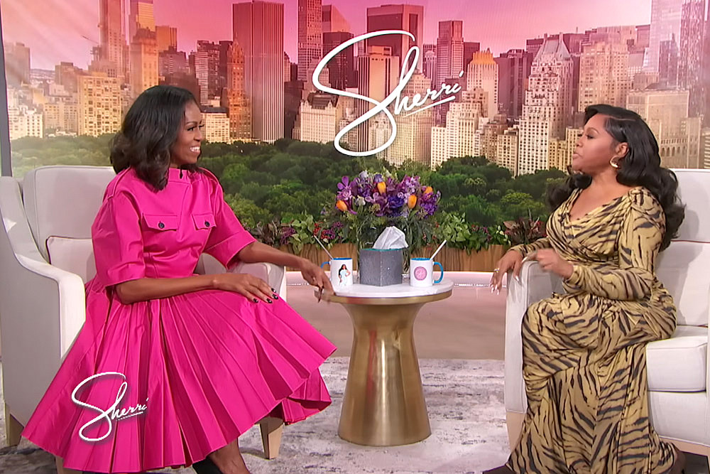 SHELLEY O!!!!!!!! Let’s all pretend it’s 2015 again, just for the next few minutes. The former FLOTUS stopped by the Sherri show to promote her new book The Look, which is all about the fashion journey of her eight years in the White House. There was a time when we considered pitching a book about her style, but ultimately, it would have been way too expensive a proposition (requiring an insane level of photo licensing) to hand off to two white male bloggers, so we never pursued it. Mrs. Obama tends to get the kind of book advances that would make us pass out, so of course she gets to document her own style. As for her current style choice…