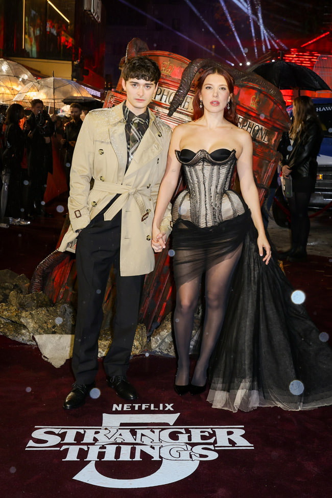 Noah Schnapp (in Burberry) and Millie Bobby Brown (in Ashi Studio)