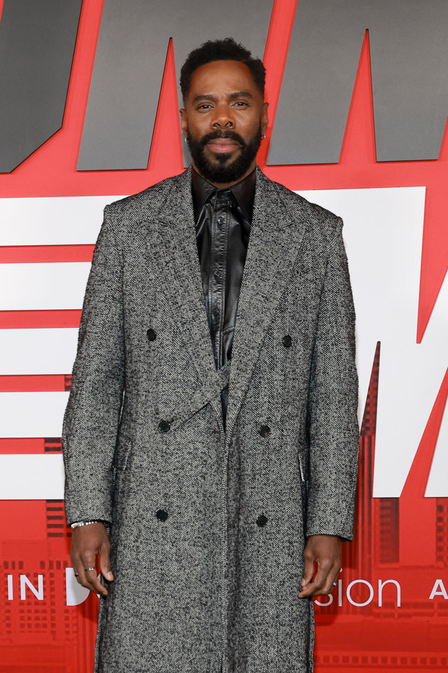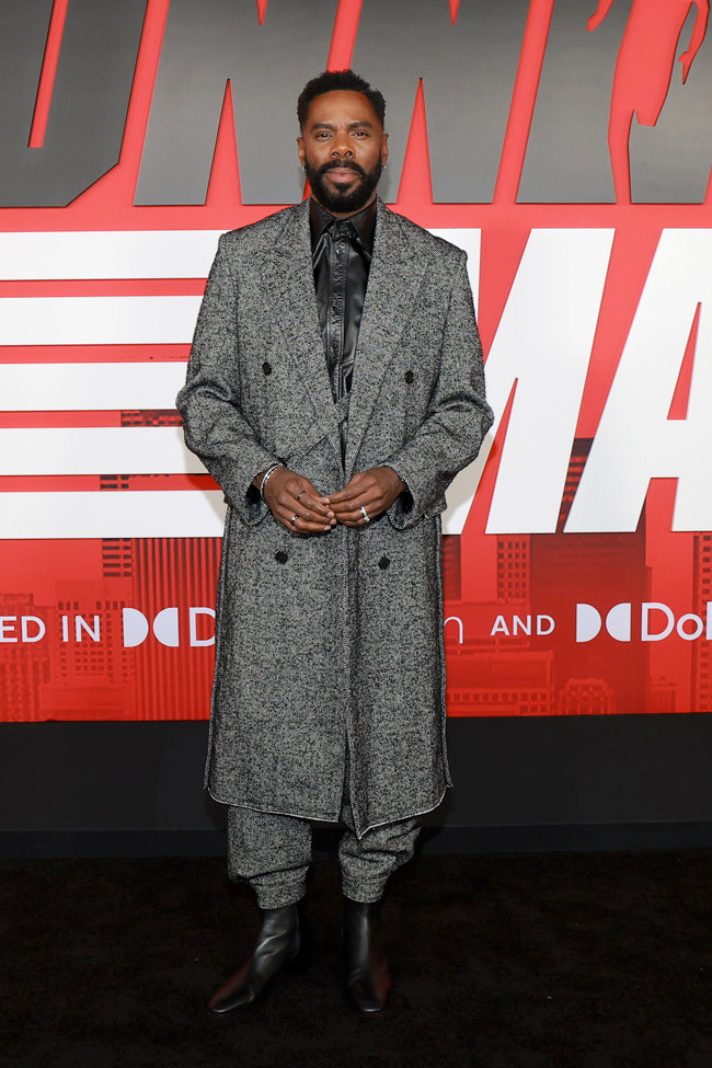It’s a gorgeous coat and we love his commitment to serving outerwear on the red carpet, but it kind of overwhelms him.