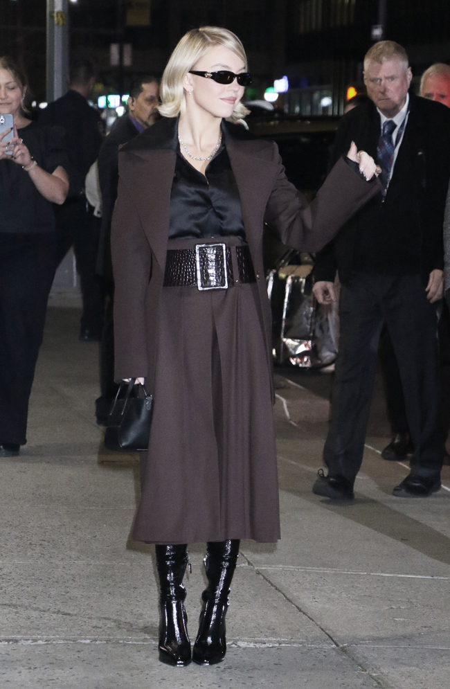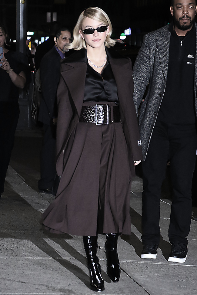 Kudos to Sydney Sweeney’s publicist, because this girl has been out all day, every day, talking to and posing for anyone who’s willing to give her the time. Of course her new film Christy is the reason why, but we get the impression that this push is especially aggressive because of her ability to generate backlash lately. For her visit to the Late Show, she stuck to the Good Girl style she’s been trying lately, with mixed results.