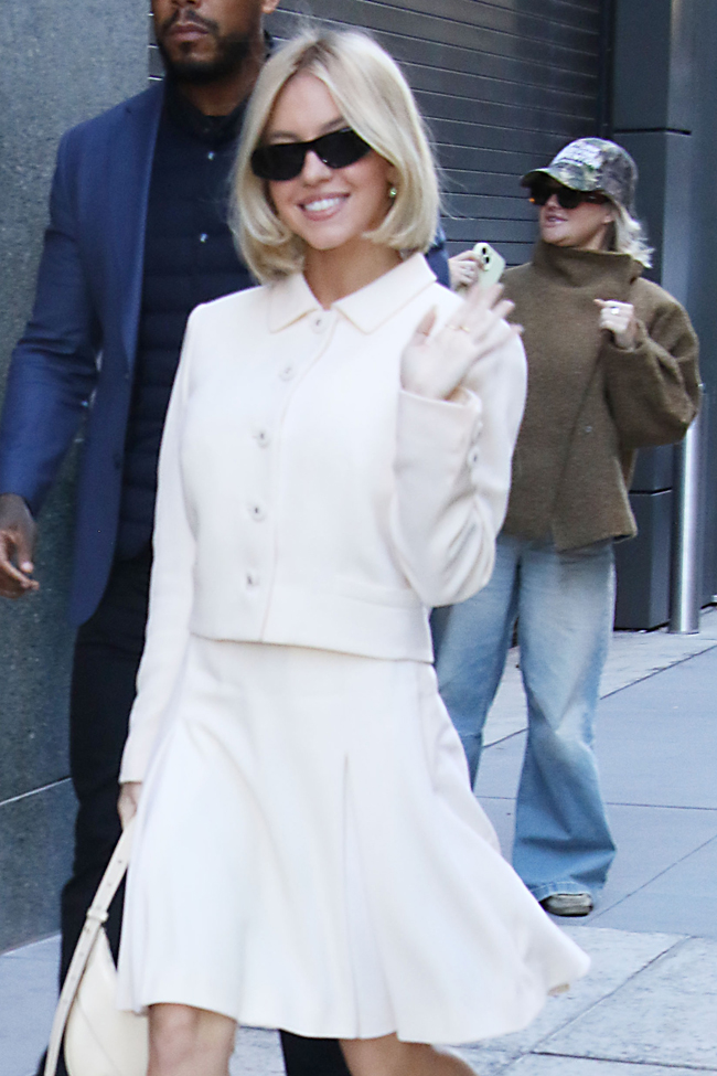 She’s just here to support her husband Bill on his presidential campaign. We don’t know if she and her team opted to course-correct after a string of baddie looks or whether this was always planned, but it’s savvy for her to be working these kinds of styles during this leg of the prom tour. It’s not a sexy or upbeat film and we figure she wanted to glam things up to promote a project where she’s decidedly unglam, but morning chat shows call for something a little sweeter than her usual. We honestly have no notes.