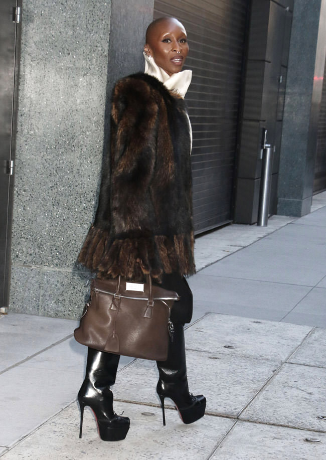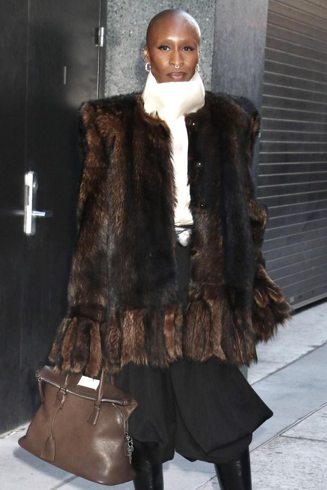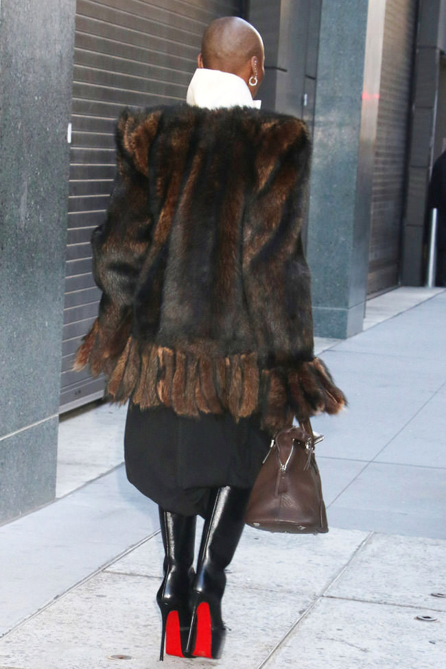 SUPER hot look that only she could pull off. The shapes and proportions are not for mere mortals to attempt. Again, it’s possible we’re just reacting to a look that owes nothing to a specific project, but this really is a head-turner of a look that only she could pull off. Hoping that’s not real fur.