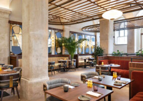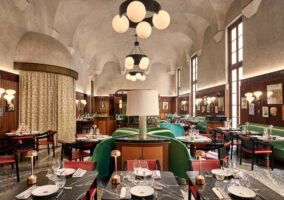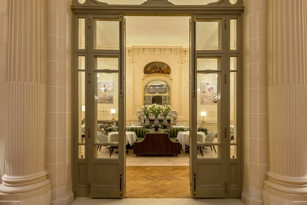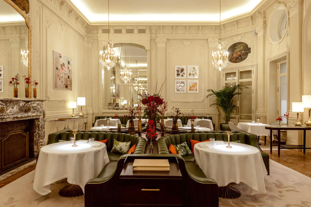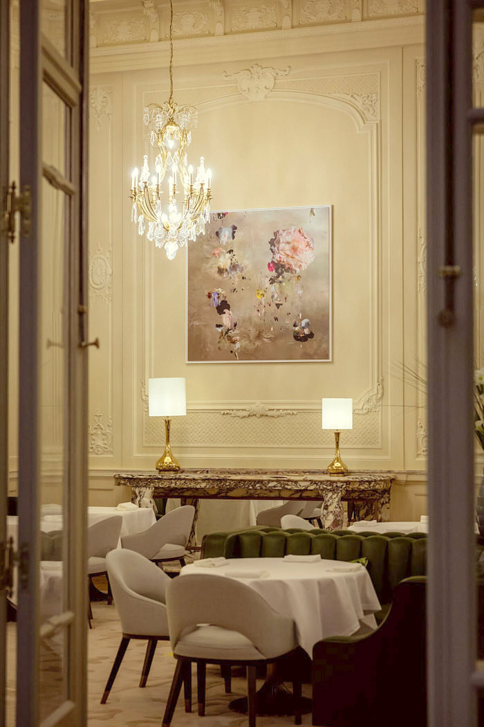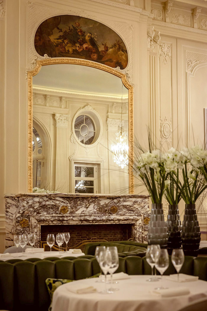 Soothing elegance, yes? Yes. Little lamps on white linen tablecloths. Molding so ornate you could hang a coat on it. Ceilings high enough for a giraffe to frolic under. It’s THURSDAY, which calls for such things.